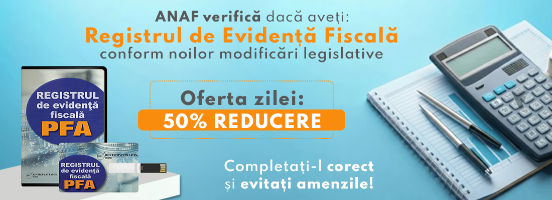 Pentru a evita orice erori, v-am pregatit o lucrare extrem de oportuna in acest context: Registrul de Evidenta Fiscala PFA, care va ofera solutii punctuale si raspunsuri pentru o serie de intrebari practice: