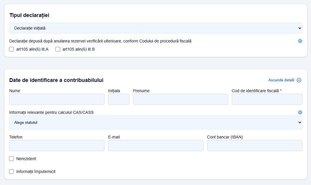 Pentru perioada 2025–2026, ANAF modifica aceasta paradigma si muta procesul de completare intr-o interfata web dedicata, proiectata pentru a fi mai coerenta, mai intuitiva si mai usor de utilizat. Accentul nu mai cade pe documentul tehnic in sine, ci pe experienta utilizatorului in etapa de completare.